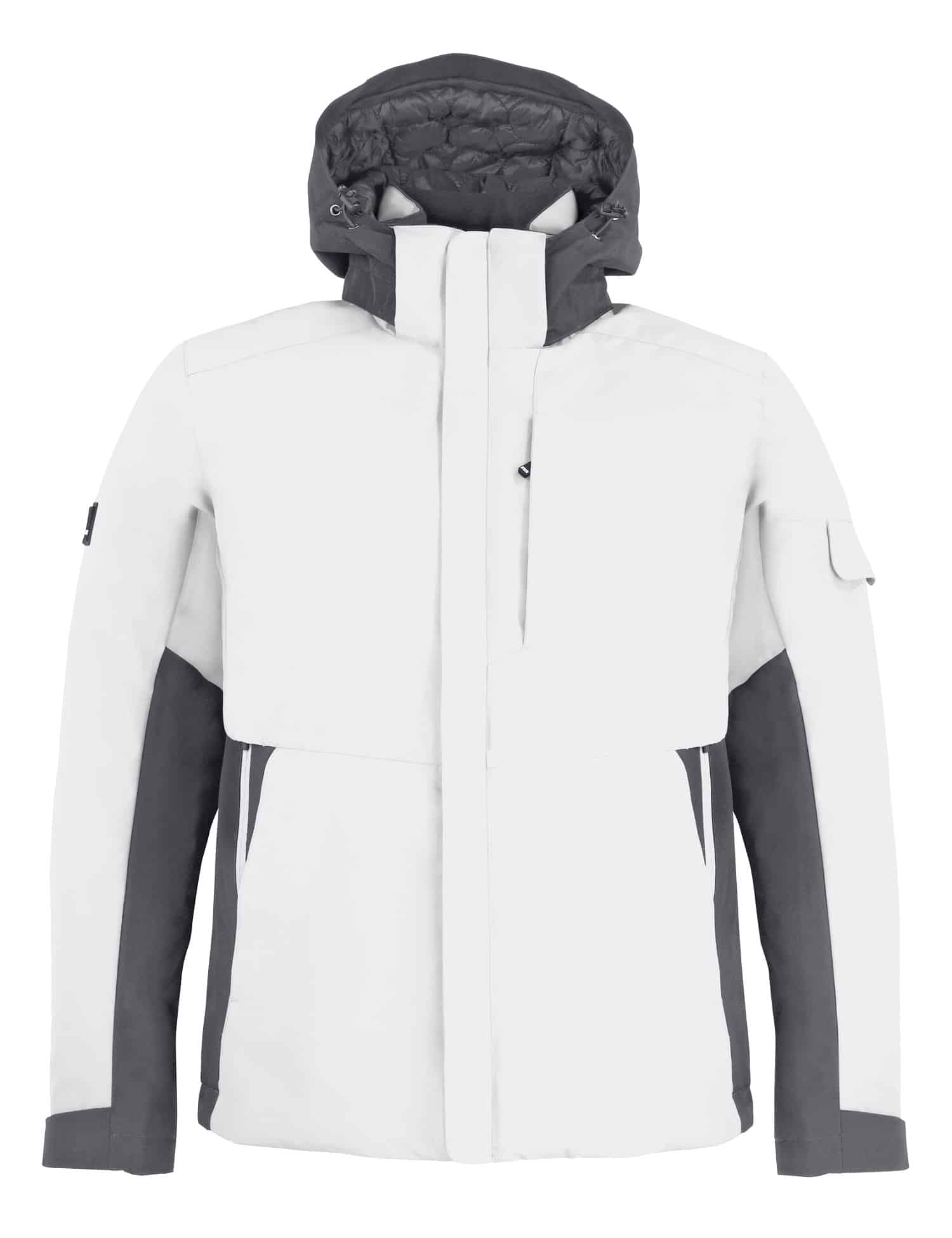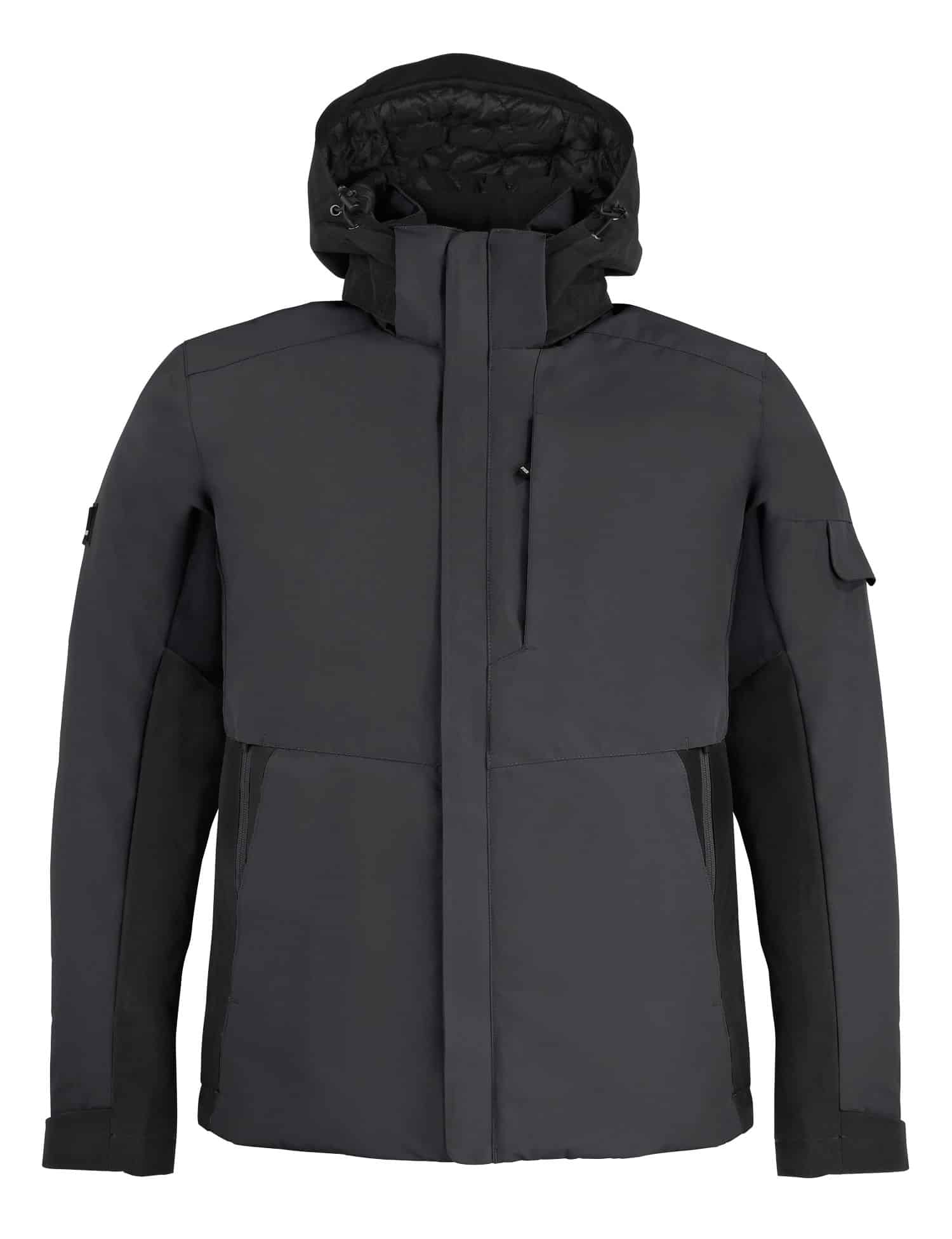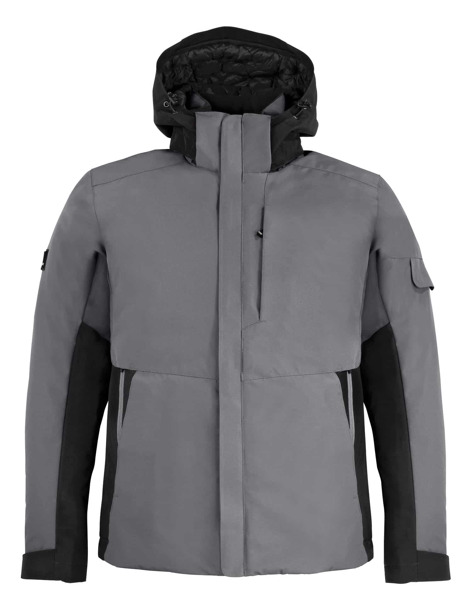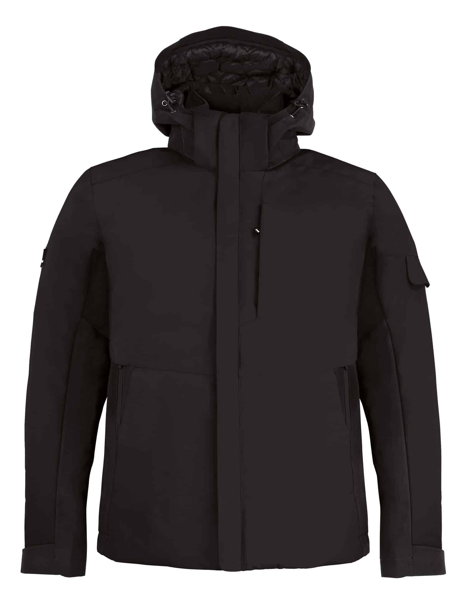 • Hoher Stehkragen, gefütterte Kapuze – verstell- und abnehmbar