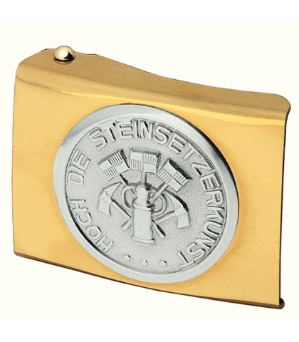 Entdecken Sie das FHB EINHARDT Koppelschloss für Steinsetzer – ein ideales Zunftzeichen, das Tradition und Handwerkskunst verkörpert. Dieses Koppelschloss ist nicht nur ein praktisches Accessoire für Ihren Arbeitsalltag, sondern auch ein stolzes Zeichen Ihrer Zugehörigkeit zur Zunft der Steinsetzer. Setzen Sie ein Zeichen für Qualität und Handwerk.
